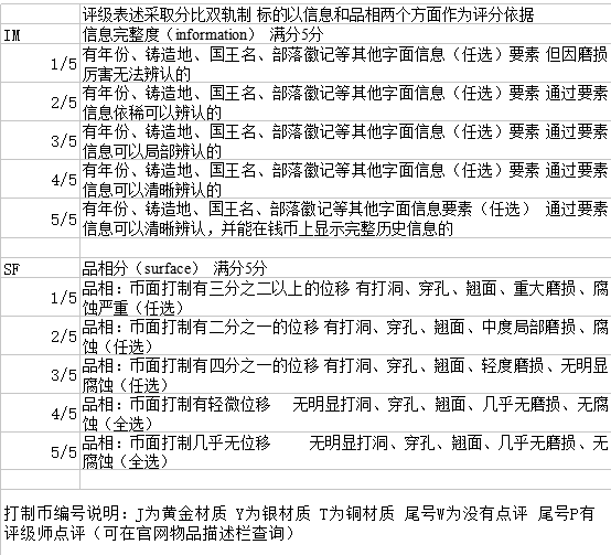 打制幣評(píng)級(jí)標(biāo)準(zhǔn)