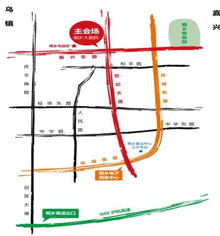 注:自駕與會(huì)人員車輛統(tǒng)一停放地——桐鄉(xiāng)市會(huì)展中心停車場(chǎng)