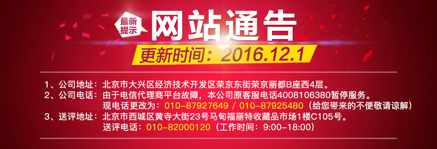 【通知】華龍盛世錢幣收藏品鑒定有限公司客服電話更新通知
