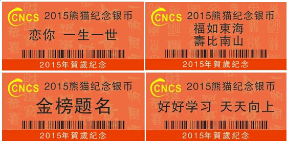 華龍盛世(CNCS 2015120日推出評級賀歲版標簽,服務范圍包括2015羊年紀念幣、世界五大投資銀幣即:中國熊貓紀念幣、美國鷹洋普制銀幣(999純銀)、加拿大楓葉普制銀幣(999純銀)、奧地利音樂普制銀幣999純銀)、澳大利亞考拉普制銀幣(999純銀)可以選用,每枚錢幣最低僅需15服務費即可得賀歲版標簽。
